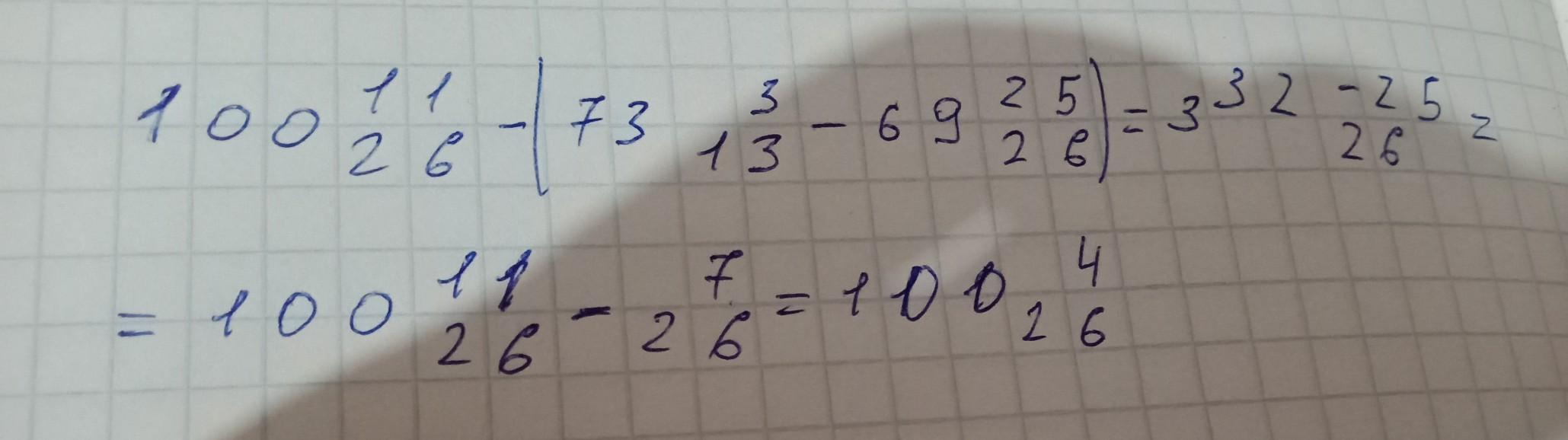 100 целых 11/26-(73 целых 3/13-69 целых 25/26)=97 целых 2/13