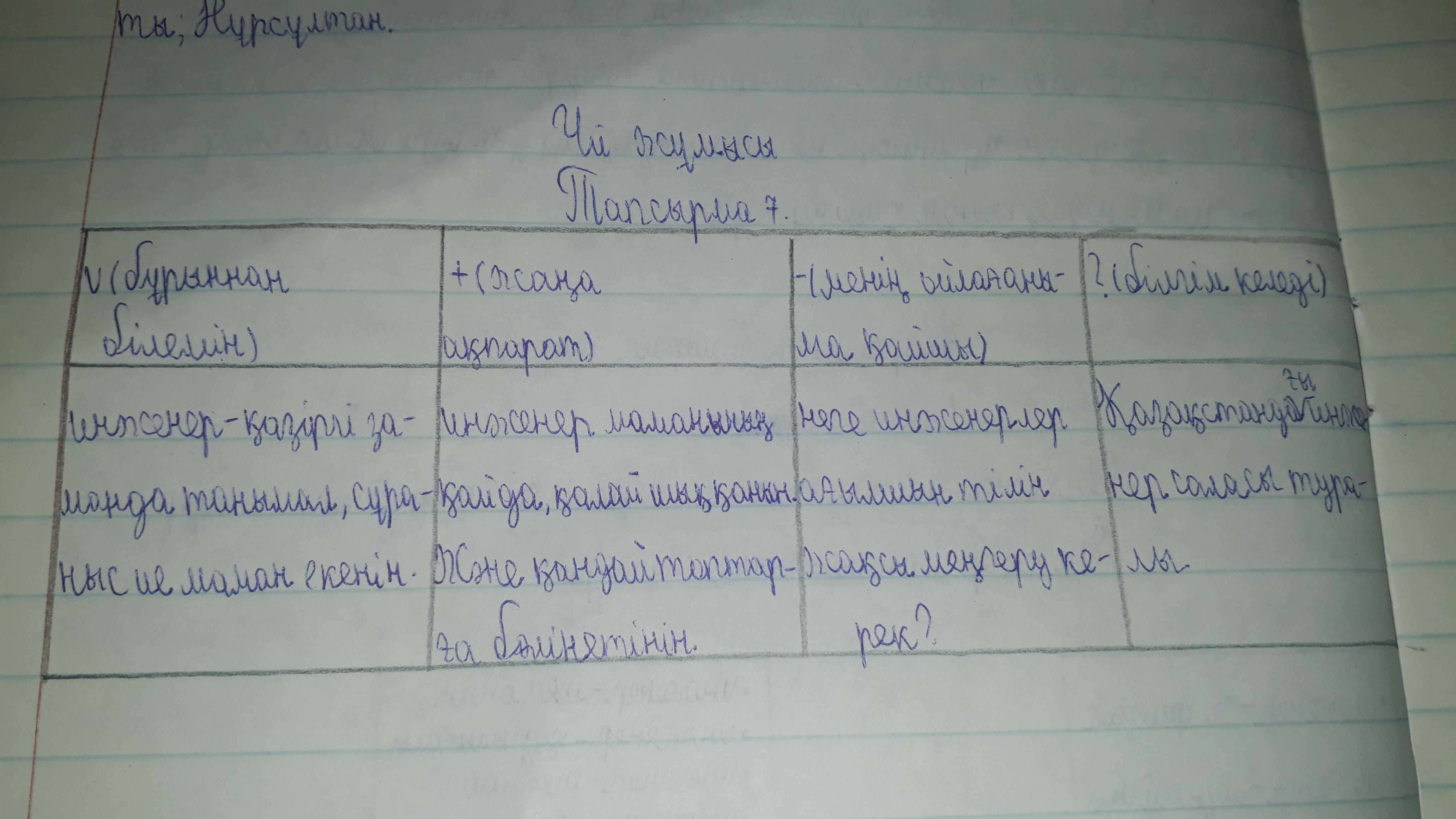 Инженерлік мамандық туралы ойларыңды «INSERT» кестесін тол- тыру арқылы қорытындылаңдар. V (бұрыннан + (жаңа - (менің ойлаға- білемін) ақпарат) ныма қайшы) ? (білгім келеді)