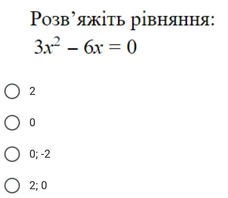 3x^2-6x=0\\3x(x-2)=0\\x(x-2)=0\\x=0,x-2=0\\x_{1}=0,x_{2}=2