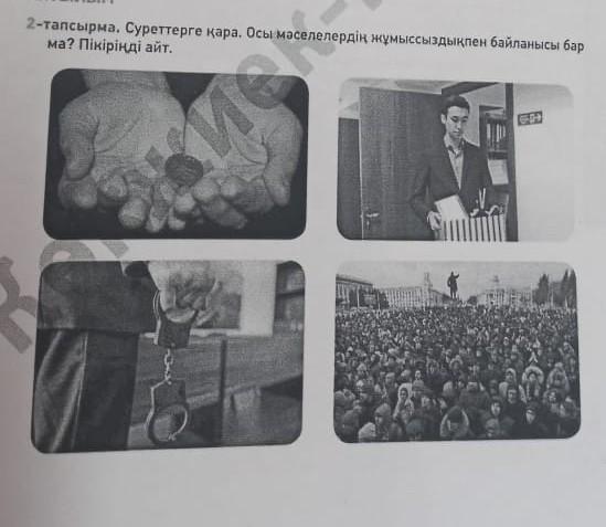 АЙТЫЛЫМ 2-тапсырма. Суреттерге қара. Осы мәселелердiн жұмыссыздыкпен байланысы бар ма? Пiкiрiндi айт.