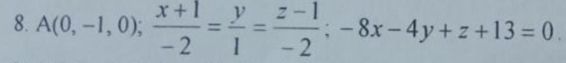 д) расстояние от точки А(0; -1; 0) до плоскости -8x – 4y + z + 13 = 0.