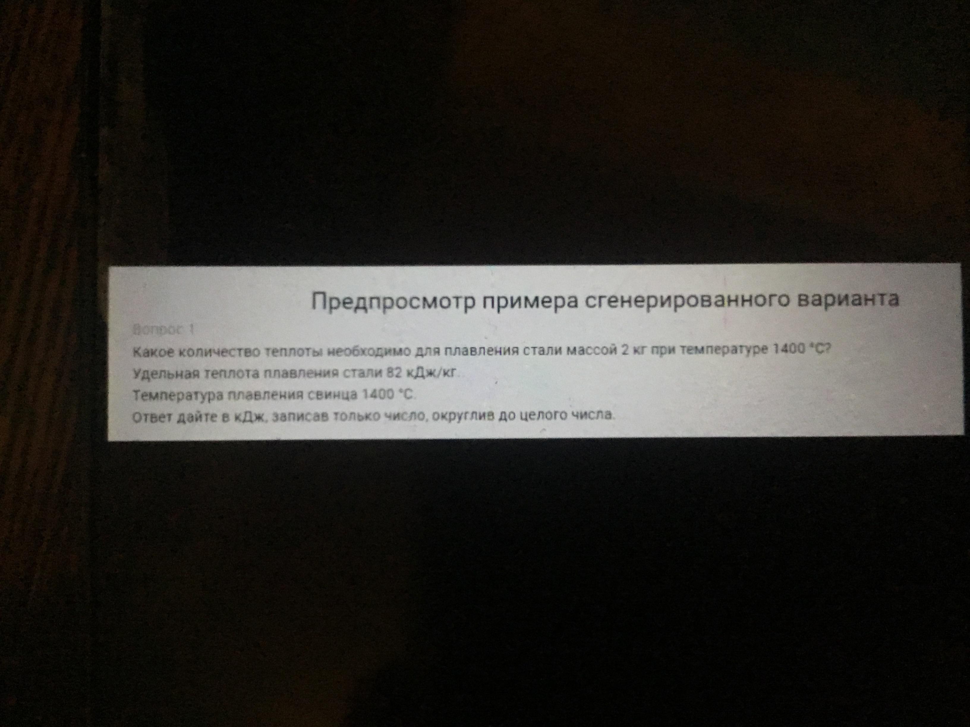 Какое количество теплоты необходимо для плавления стали массой 2 кг при температуре 1400 "С? Удельная теплота плавления стали 82 кДж/кг Температура плавления свинца 1400 °С. Ответ дайте в кДж, записав только число, округлив до целого числа.