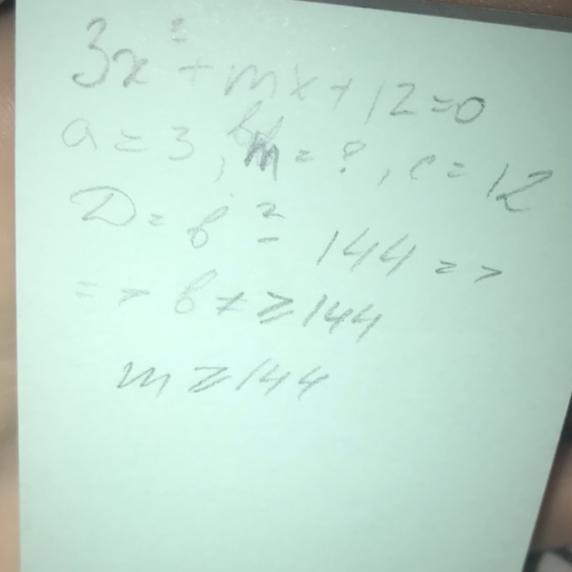 При каких значениях «m»уравнение: 3х^2+mx+12=0