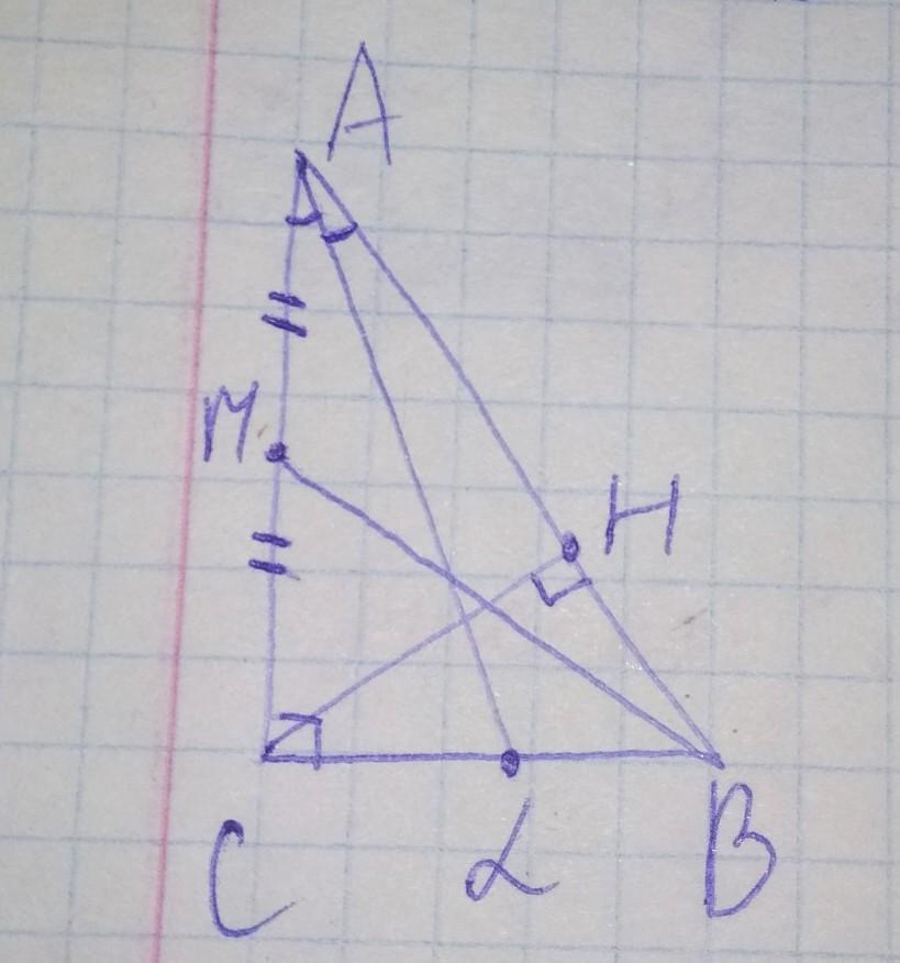 Накресли трикутник ABC із прямим кутом С та проведи висоту CH, бісектрису AL