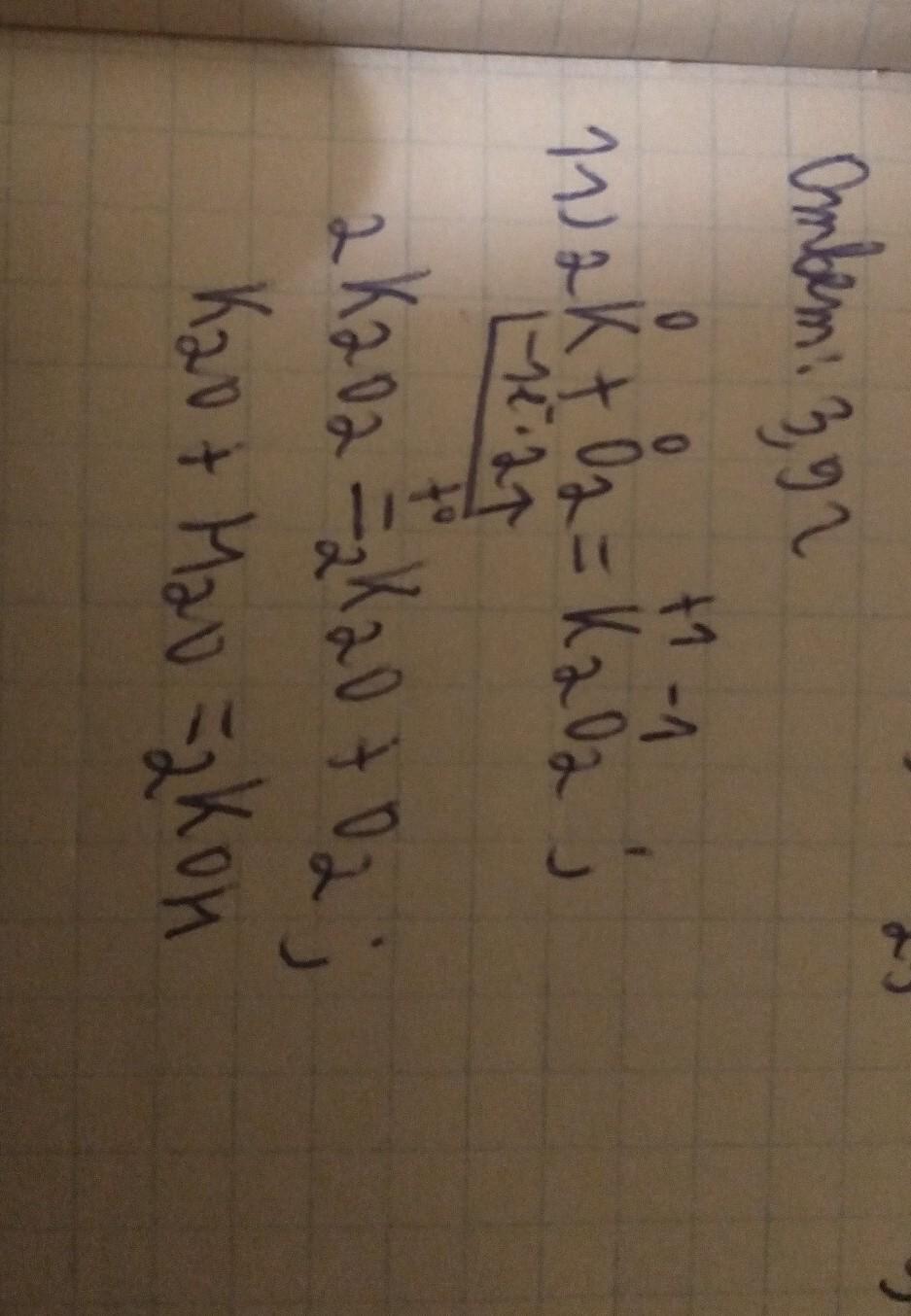 2K + O2 =K2O2; 2K2O2 (t) = 2K2O + O2; K2O + H2O = 2KOH