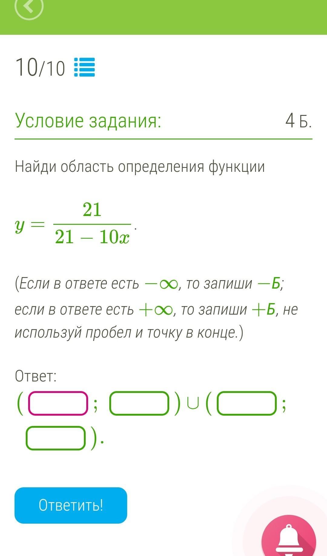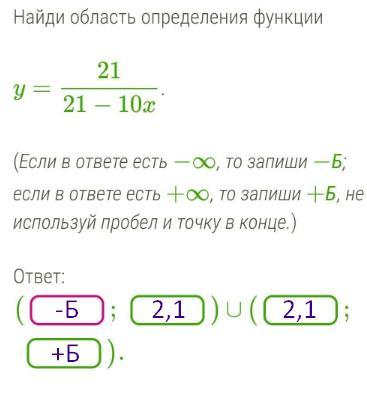 х ∈ (-Б: 2,1)∪(2,1;+Б)