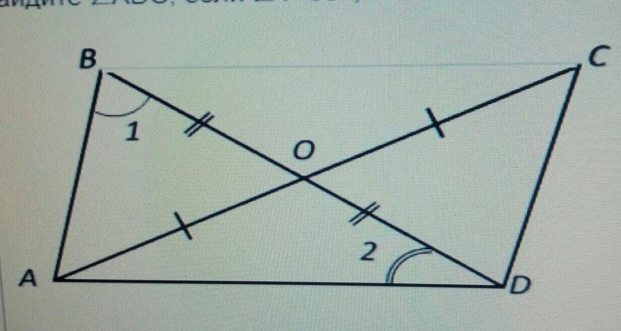 помагите пожалуста решить на рисунке рисунок во вложении ОА=ОД ОВ=ОС угол 1=74 градуса угол 2=36 градусов ав=13 см найдите сторону дс