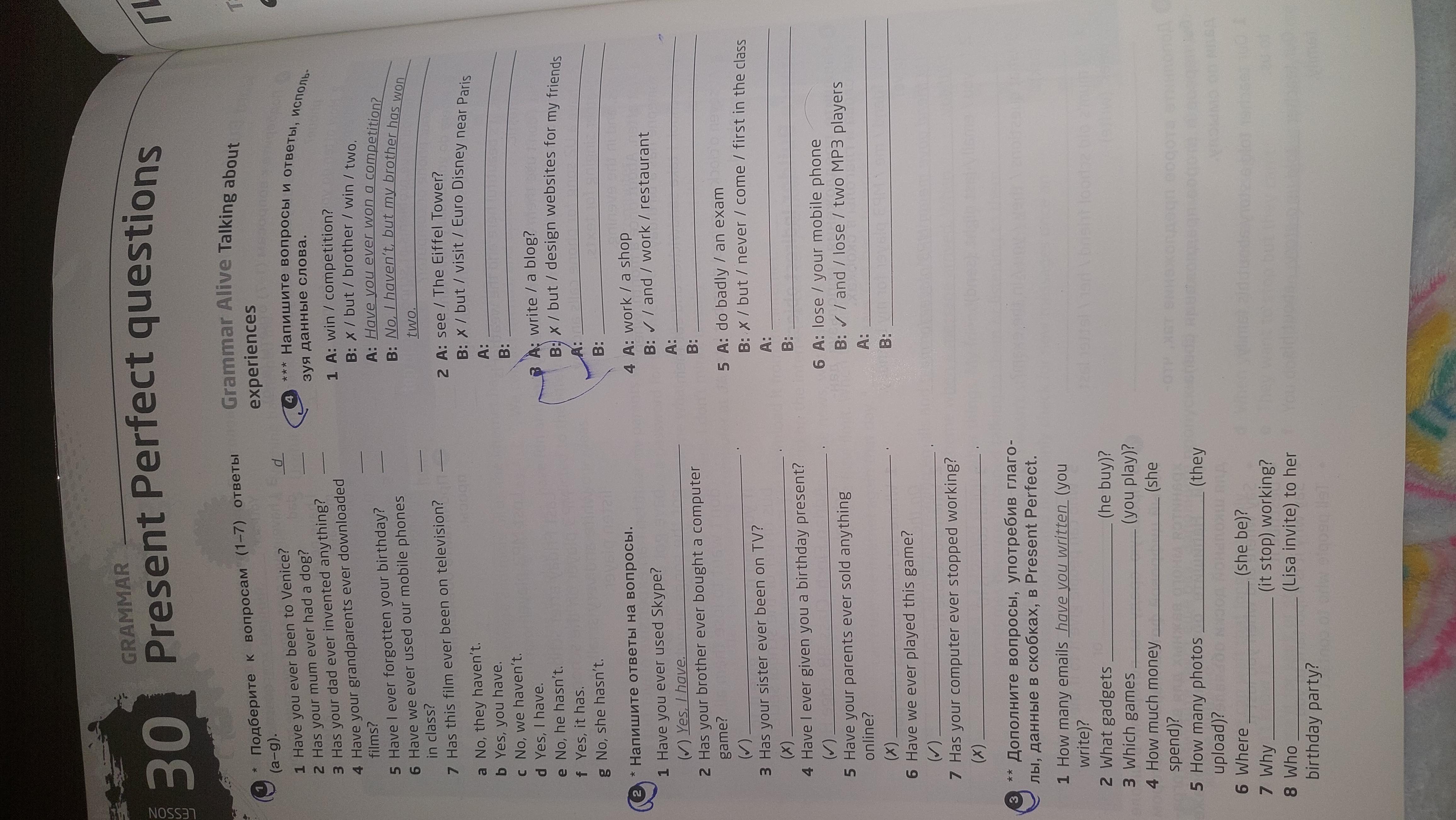 2)Yes, he has. 3)No,she hasn't 4)Yes, I have 5)No, they haven't 6)Yes, we have 7)No, it hasn't