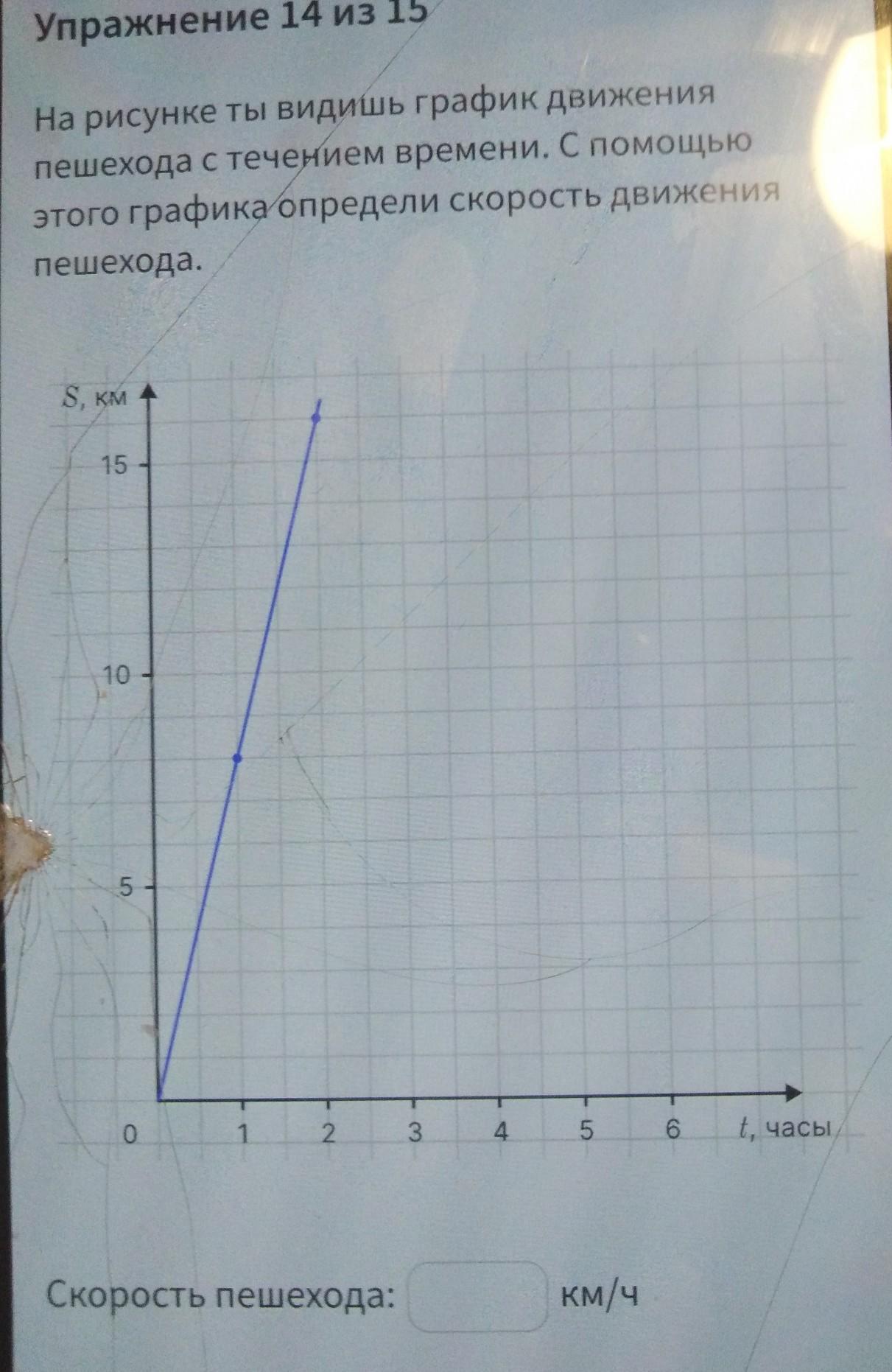 На рисунке ты видишь график движения пешехода с течением времени. С помощью этого графика определи скорость движения пешехода.