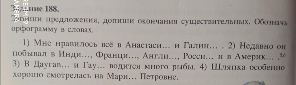 Мне нравилось всё в Анастаси/и (|скл., П п.) и Галин/е (|скл., П п.). 2) Недавно он побывал в Инди/и (|скл., П п.), Франци/и (|скл., П п.) , Англи/и (|скл., П п.), Росси/и (|скл., П п.) и в Америк/е (|скл., П п.). 3) В Даугаве (|скл., П п.) и Гау/и (|скл., П п.) водится много рыбы. 4) Шляпки особенно смотрелась на Мари/и (|скл., П п.) Петровне.