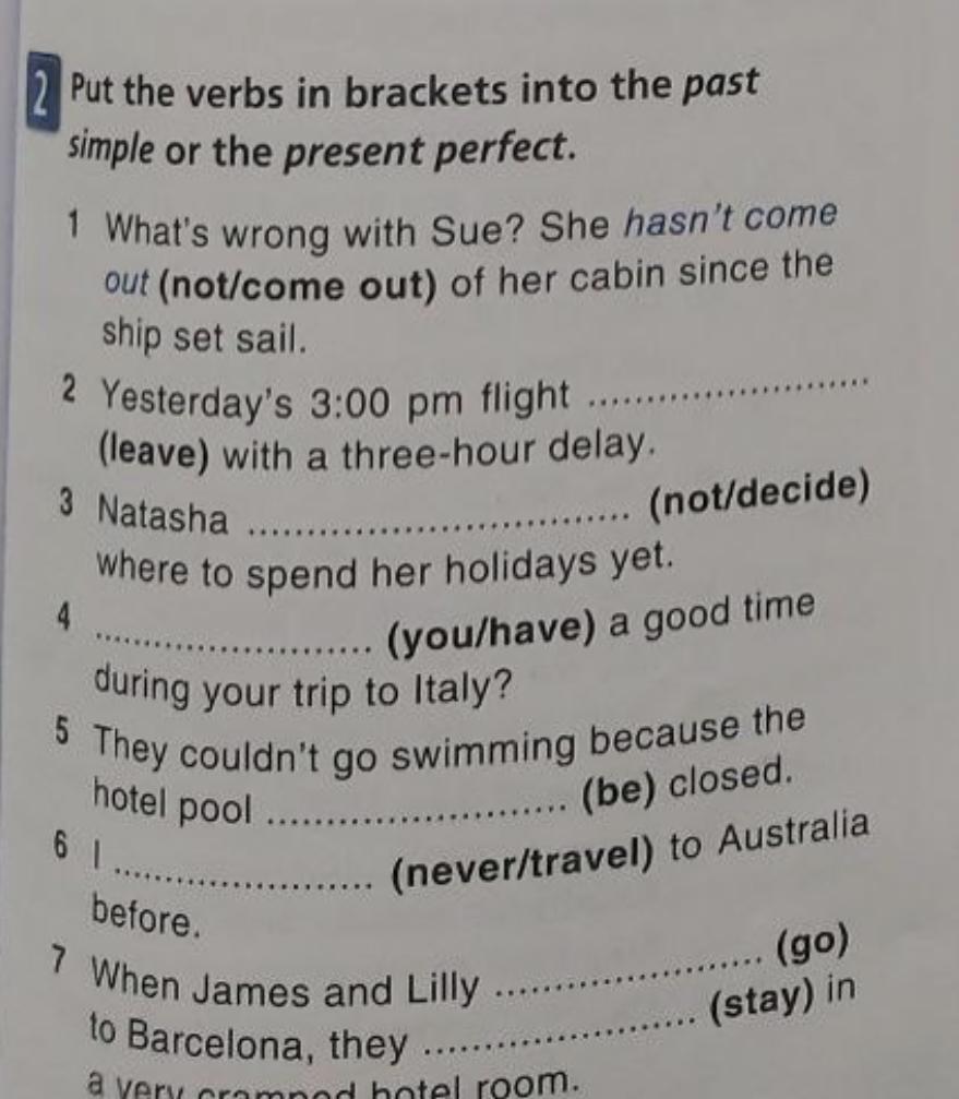 7) When James and Lily going to Barcelona, they staying a very crammed hotel room.