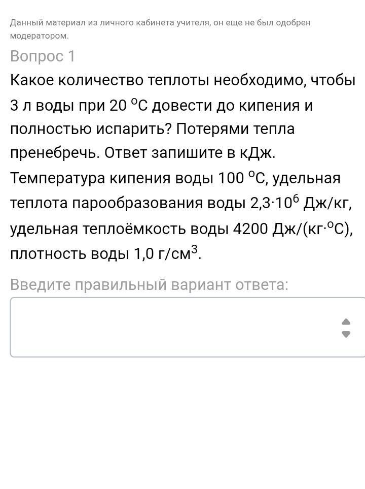 Q₁ = c·m·(t₂ - t₁) = 4200·3·(100 - 20) ≈ 1000 кДж