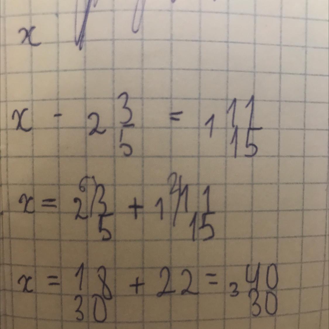 х - 2 3/5=1 11/15
