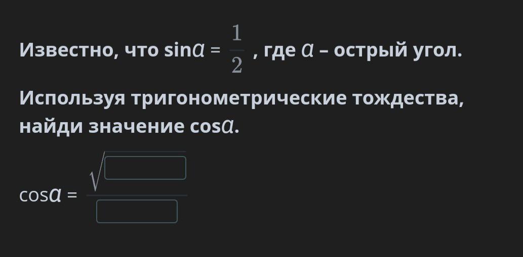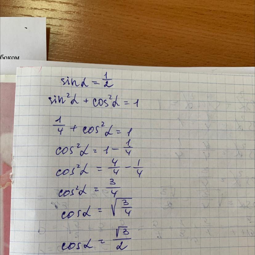 Выражаем косинус альфа через основное тригонометрическое тождество и получаем ответ корень из 3 на 2