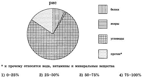 кароче, делишь круг пополам - это 50% на 50%, потом на 4 части - это 25 на 25 на 25 на 25. Верхний правый кусочек (там где эти твои белки) будет равен 25 процентов. Значит белки соствляют от 0 до 25%))