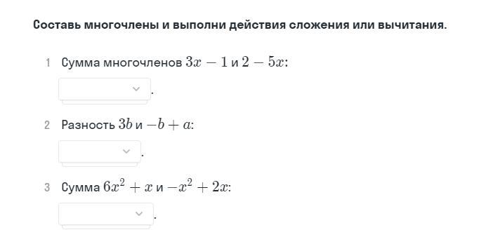 в первом задании одночлены третий, 4-ый, 5-ый, 6-ой, остальные многочлены. вообще-то вам никто не будет столько решать в одном вопросе. раскидайте по отдельности. так, скорее всего модератор удалит. Во втором задании а) четвёртый вариант, б) второйв) последний вариант.