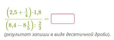((2,5 +1/4)·1,8)/((8,4-8 1/5) ÷2/3)=((5/2 +1/4)·9/5)/((8 2/5-8 1/5)·3/2)=((10/4 +1/4)·9/5)/(1/5·3/2)=(11/4 ·9/5)/(3/10)=99/20 ·10/3=33/2=16,5