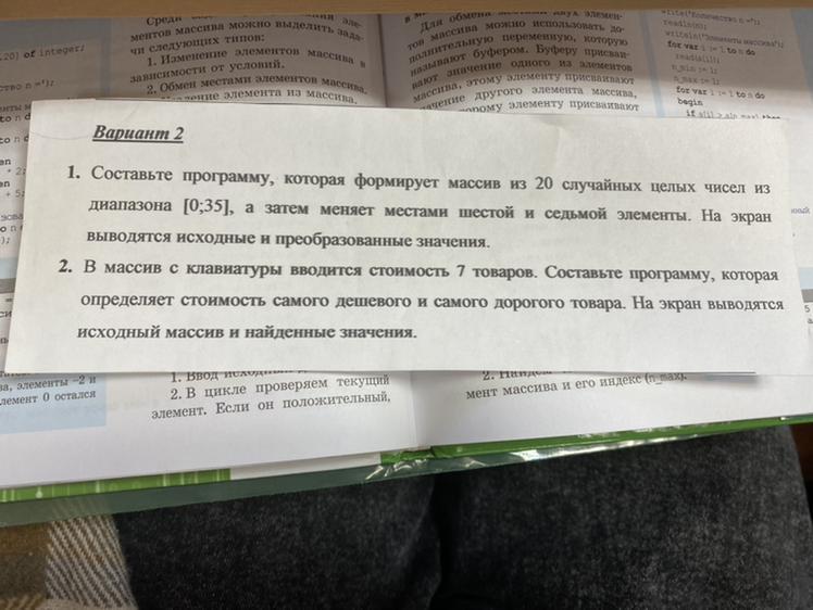 составьте программу, которая формирует массив из 20 случайных целых чисел из диапазона [0;35], а затем меняет местами шестой и седьмой элементы. На экран выводятся исходные и преобразованные значения.