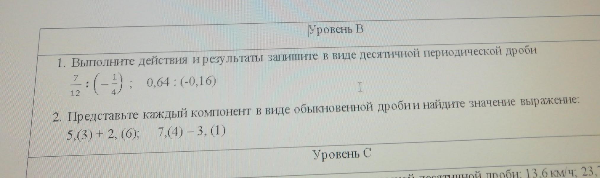 1. 7/12 ÷(-1/4)=7/12 ·(-4)=-7/3=-2,(3)