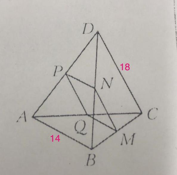 Точки M, N, Р и Q - середины отрезков BC, BD, AD и AC соответственно, AB = 14 см, CD = 18 см (рис.9). Определите вид