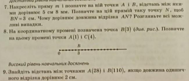накресліть пряму m і позначте на ній точки A і B відстань між якими 5 см 8мм Позначте на цій прямій таку точку N щоб BN=3см Чому дорівнює довжина відрізка AN Розгляньте всі можливі випадки