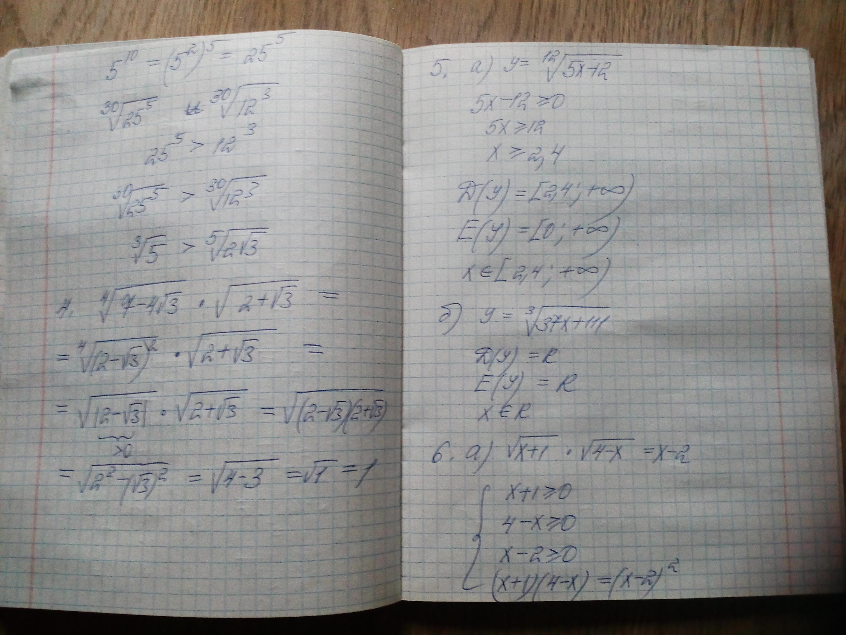 5х-12≥0 5х≥12 |:5 x≥2,4. ⇒ x∈[2,4;+∞).
