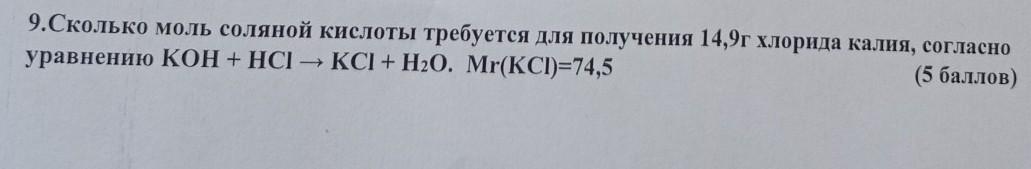 n (KCl) = m : M = 14,9 : 74,5 = 0,2 моль