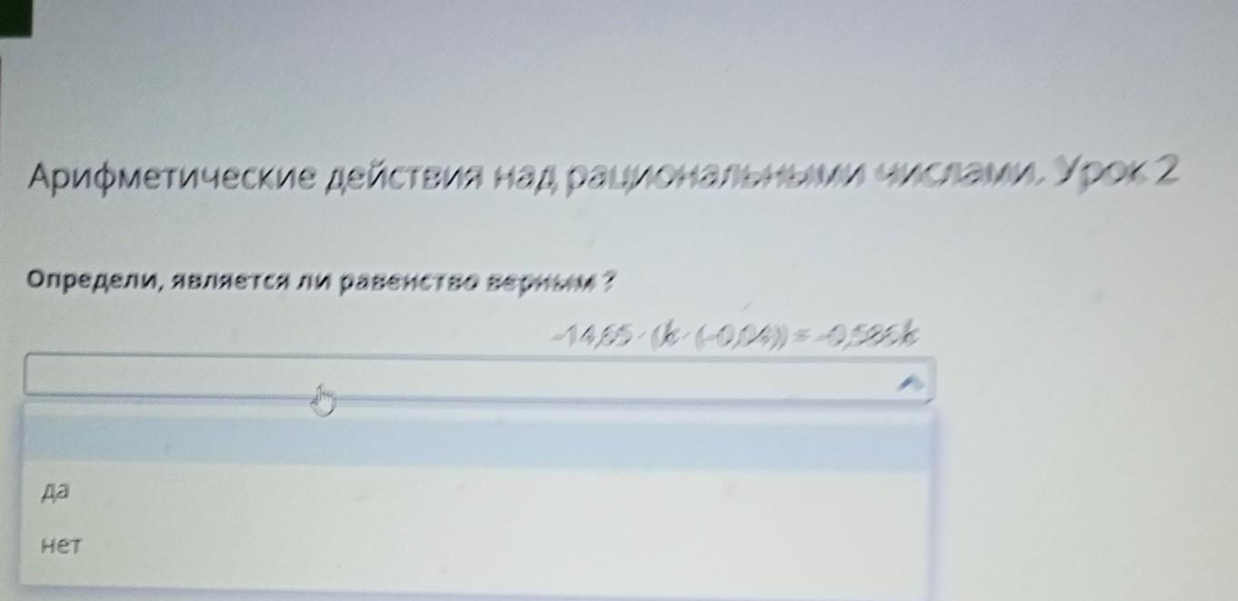 Арифметические действия над рациональными числами. Урок 2 Определи, является ли равенство верным ? -14,65 k - (-0,04)) -0,536k да Нет