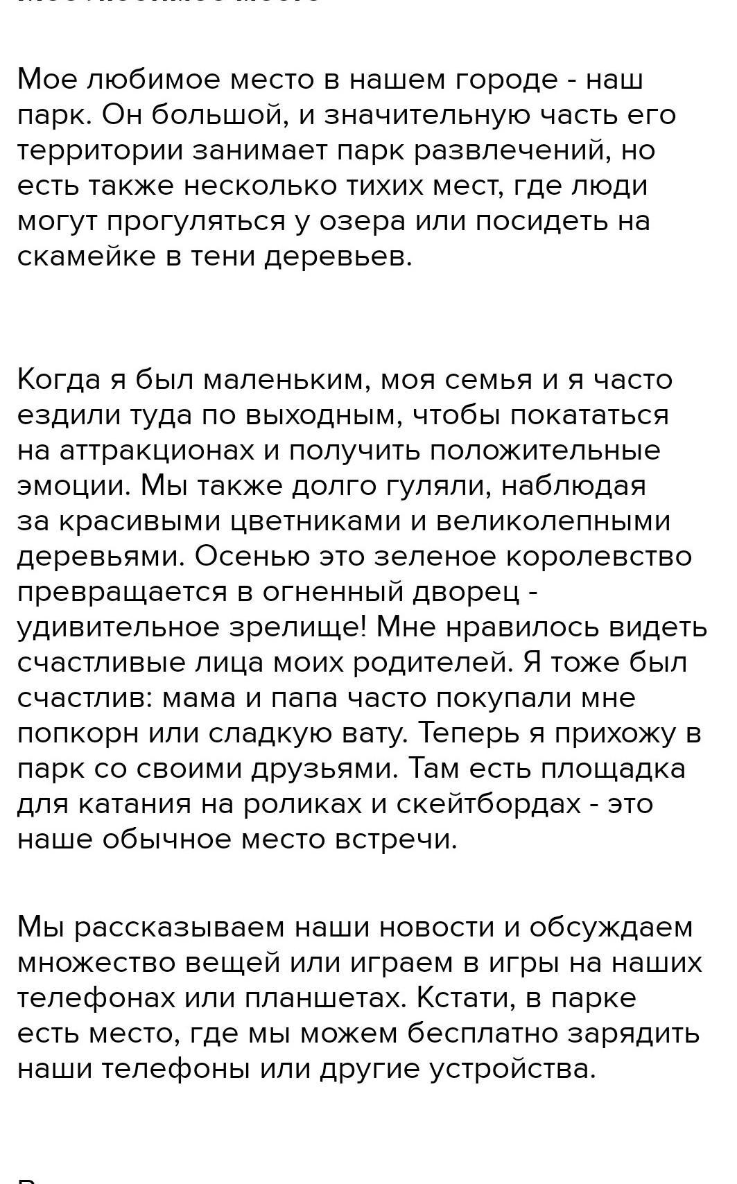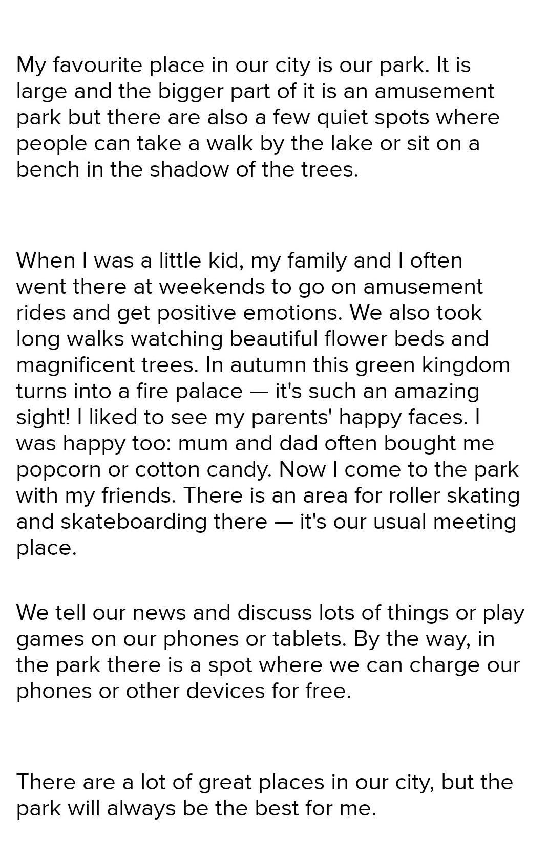 написать эссе моё любимое место в парк и музее по английскому языку с переводом пожалуйста 50 или 60 слов