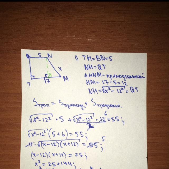 А, ой, на фотке не всё видно. Продолжение: x^2=169; x=13. Ответ: 13