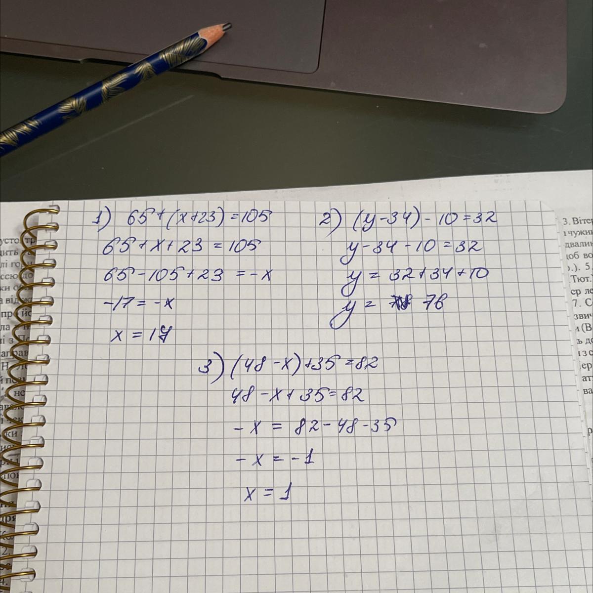 1)65+(х+23)=105
