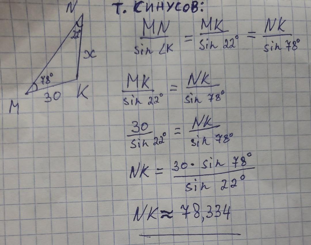 Точное значение получить невозможно, но приближенная длина стороны NK = 78,884