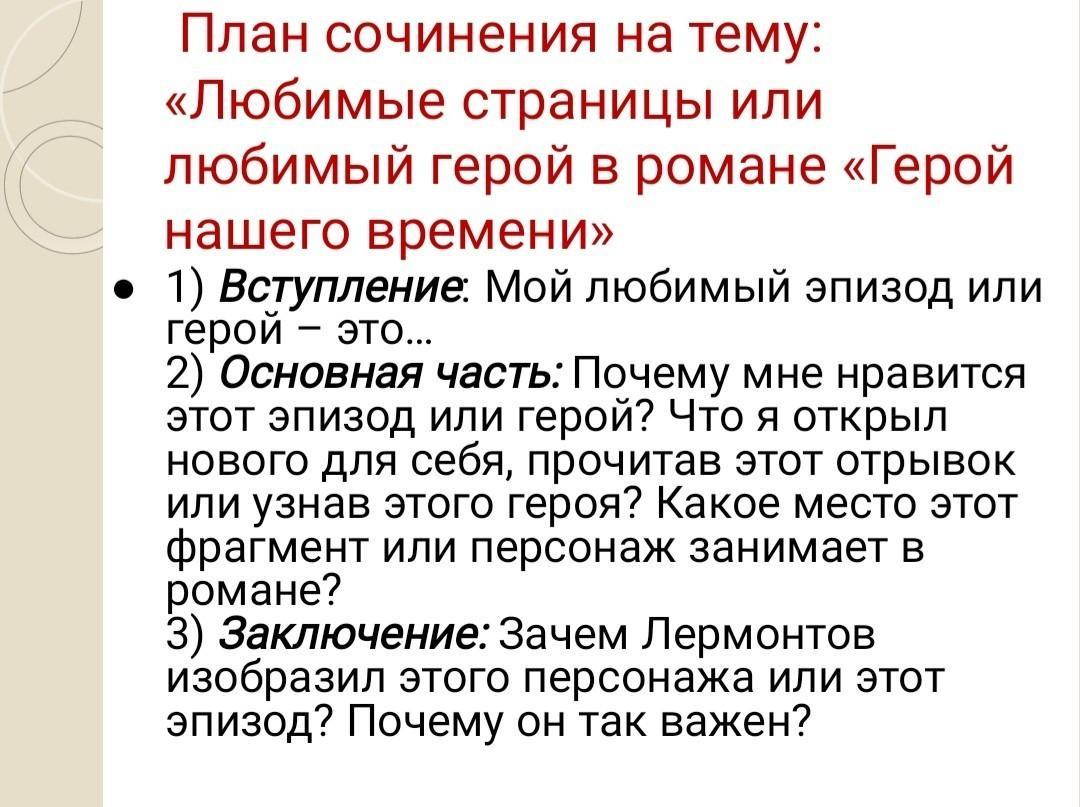 Сочинение на тему: Любимые страницы или любимый герой в романе "Герой нашего времени"