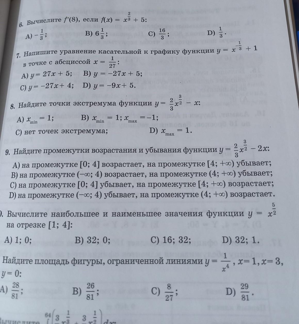 6. f '=(2\3)x^(-1\3), f'(8)=(2\3) (8)^(-1\3)=1\3