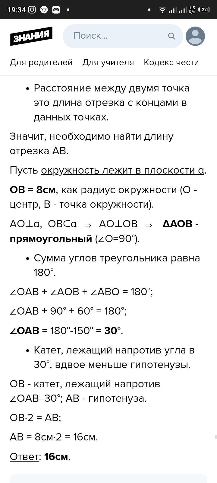 3.044. Прямая OB перпендикулярна плоскости окружности