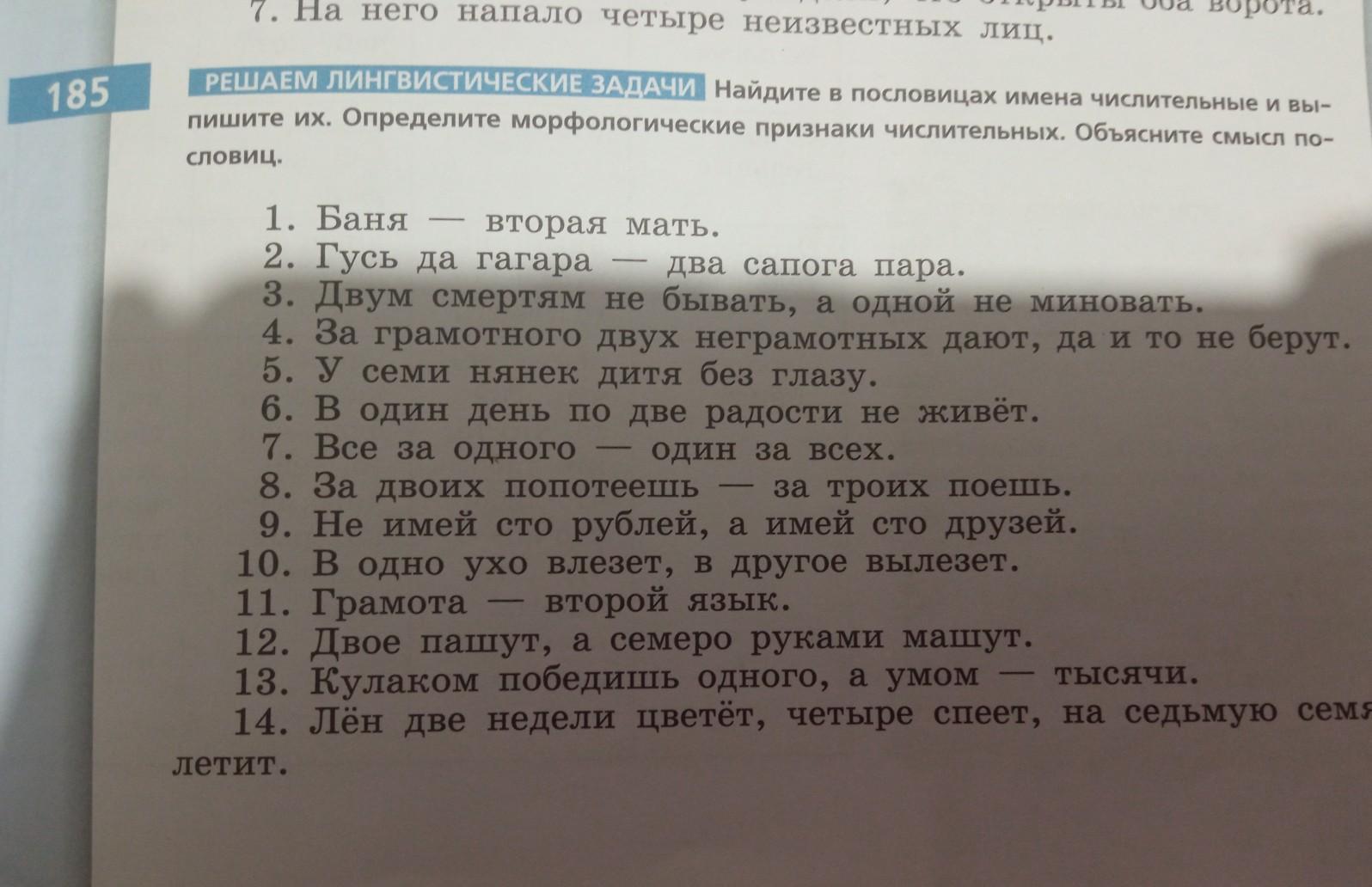 Найдите в пословицах имена числительные и выпишите их. Определите морфологические признаки числительных.