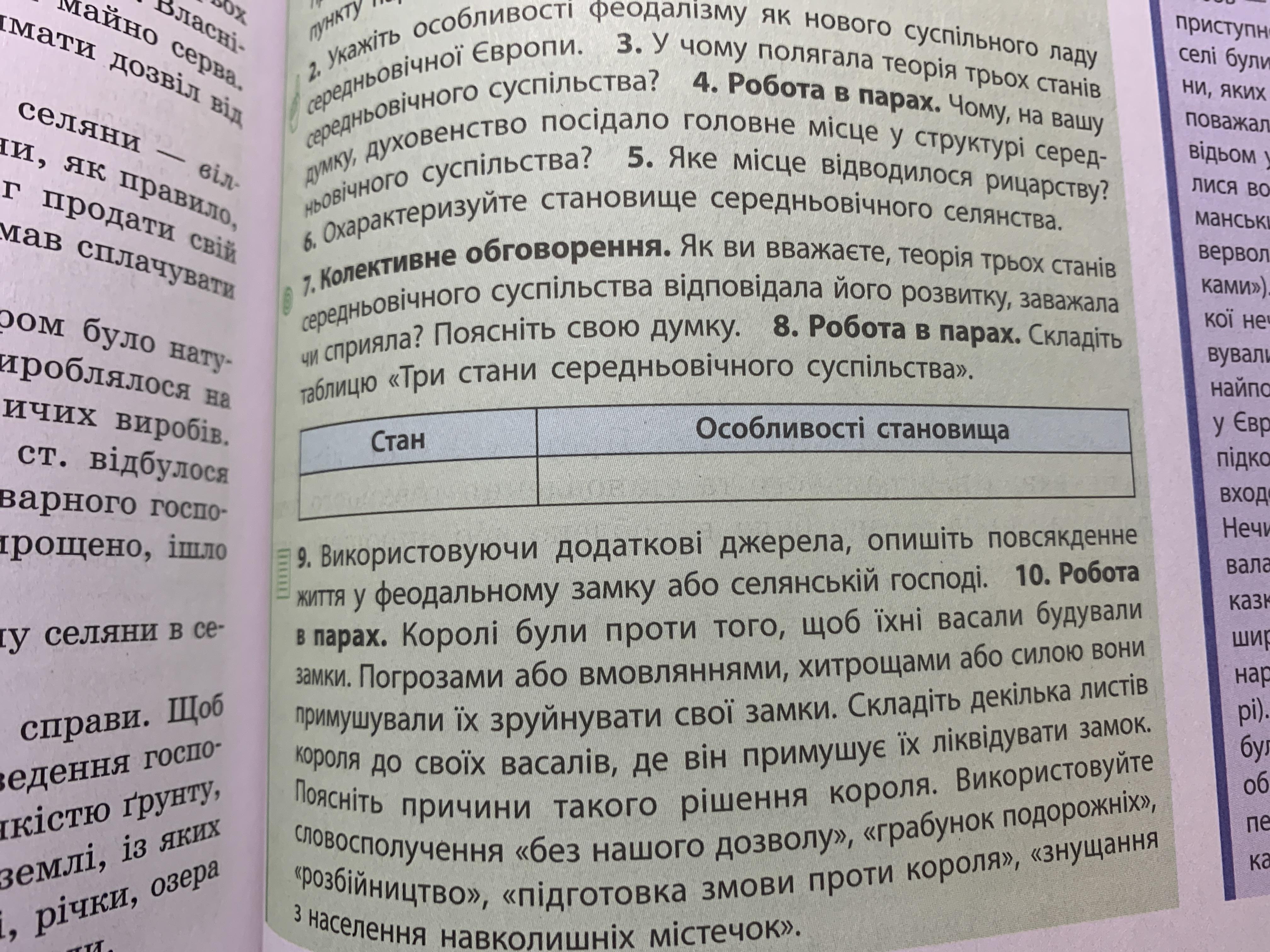 Освічені люди середньовіччя вважали, що суспільство поділяється натри різні стани: «тих, що моляться» (священики і ченці), «тих, що воюють» (рицарі) і «тих, що працюють» (селяни, ремісники та ін.). Соціальний статус успадковувався від батька до сина.