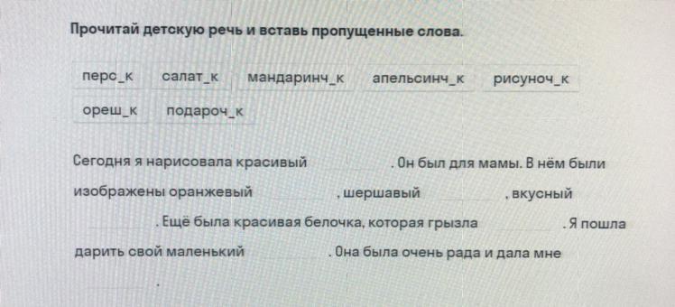 1 предл .Рисуночек ;3 предл.Апельсин,Орех,Персик; 4 предл. Солдатика.;5 пердл.Подарочек.