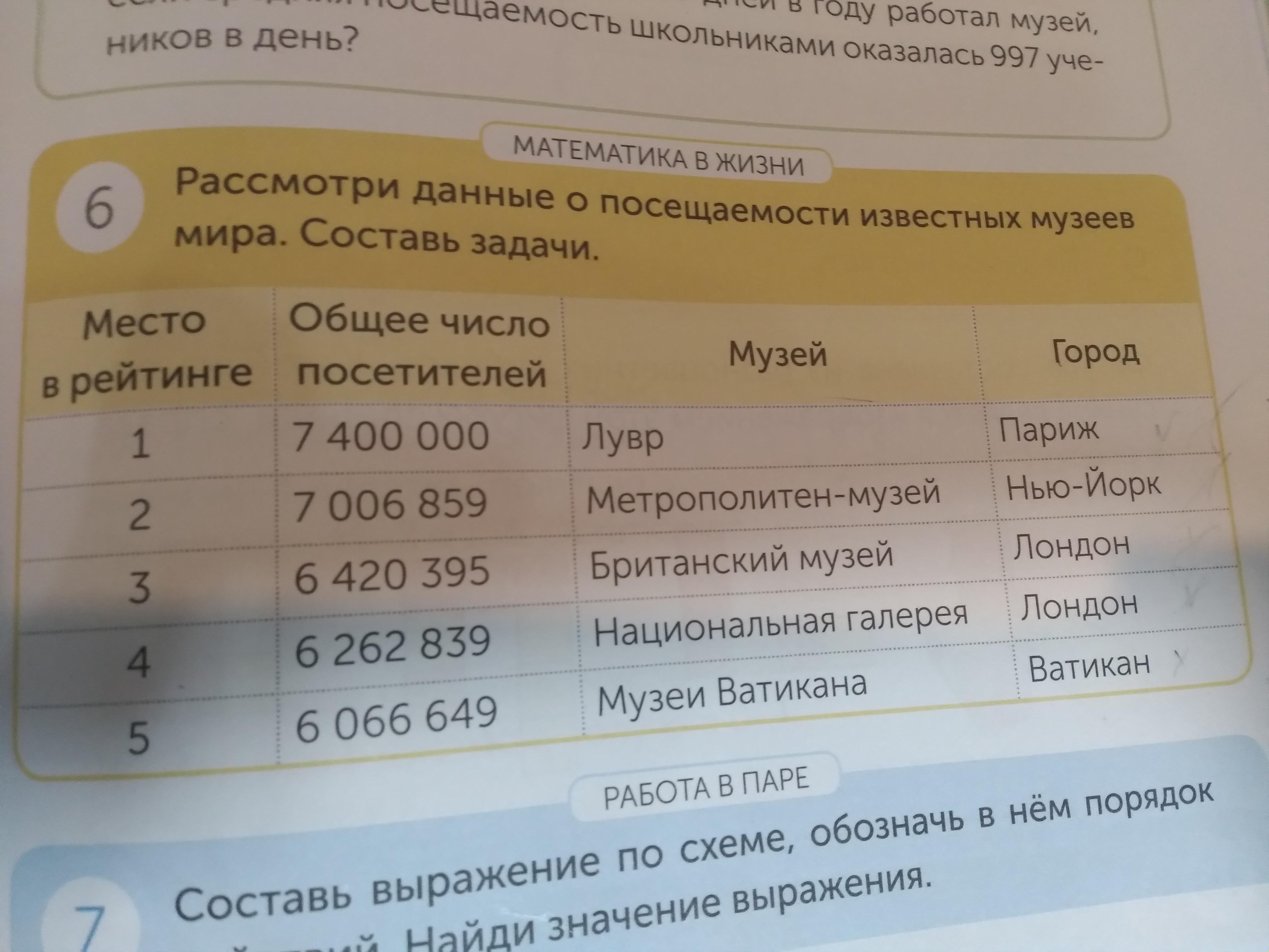 В Лондоне есть 2 известных музея.Один из которых Британский музей,с посещаемостью 6 420 395 человек.А второй Национальная галерея,посещаемость которого 6 262 839 поситителей в год.Сколько людей посещают эти музеи?