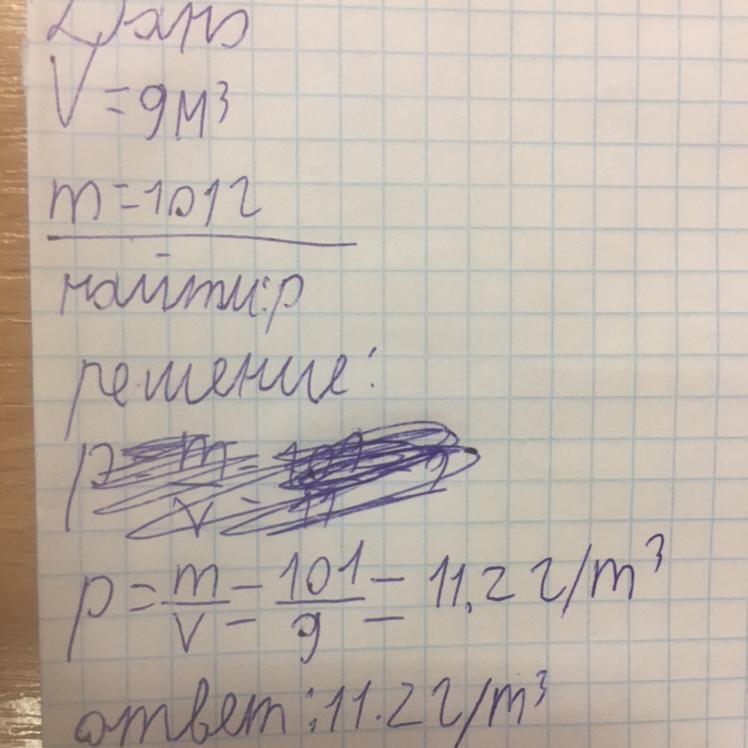 Определи абсолютную влажность в помещении объёмом 9 м³, если в нём содержится водяной пар массой 101 г.