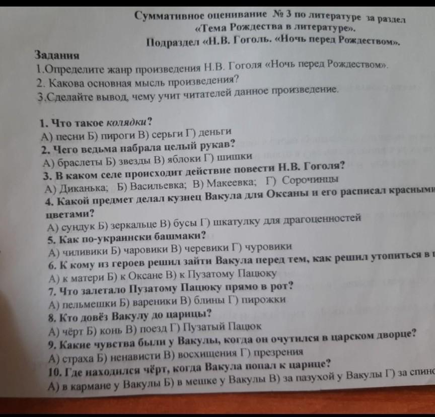 1.Определите жанр произведения Н.В. Гоголя <<Ночь перед 2. Какова основная мысль произведения? 3. Сделайте вывод, чему учит читателей данное произведение