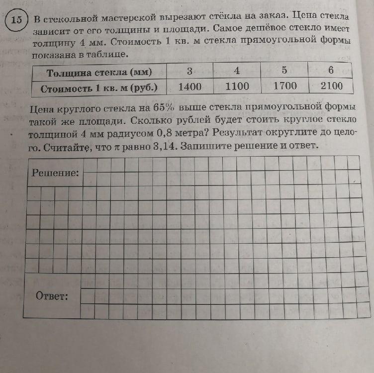 2) 1100 * 1,65 = 1815 (руб.) - стоимость 1 м² круглого стекла толщиной 4 мм;