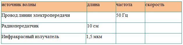 Дополните таблицу, считая, что волны распространяются в воздухе.