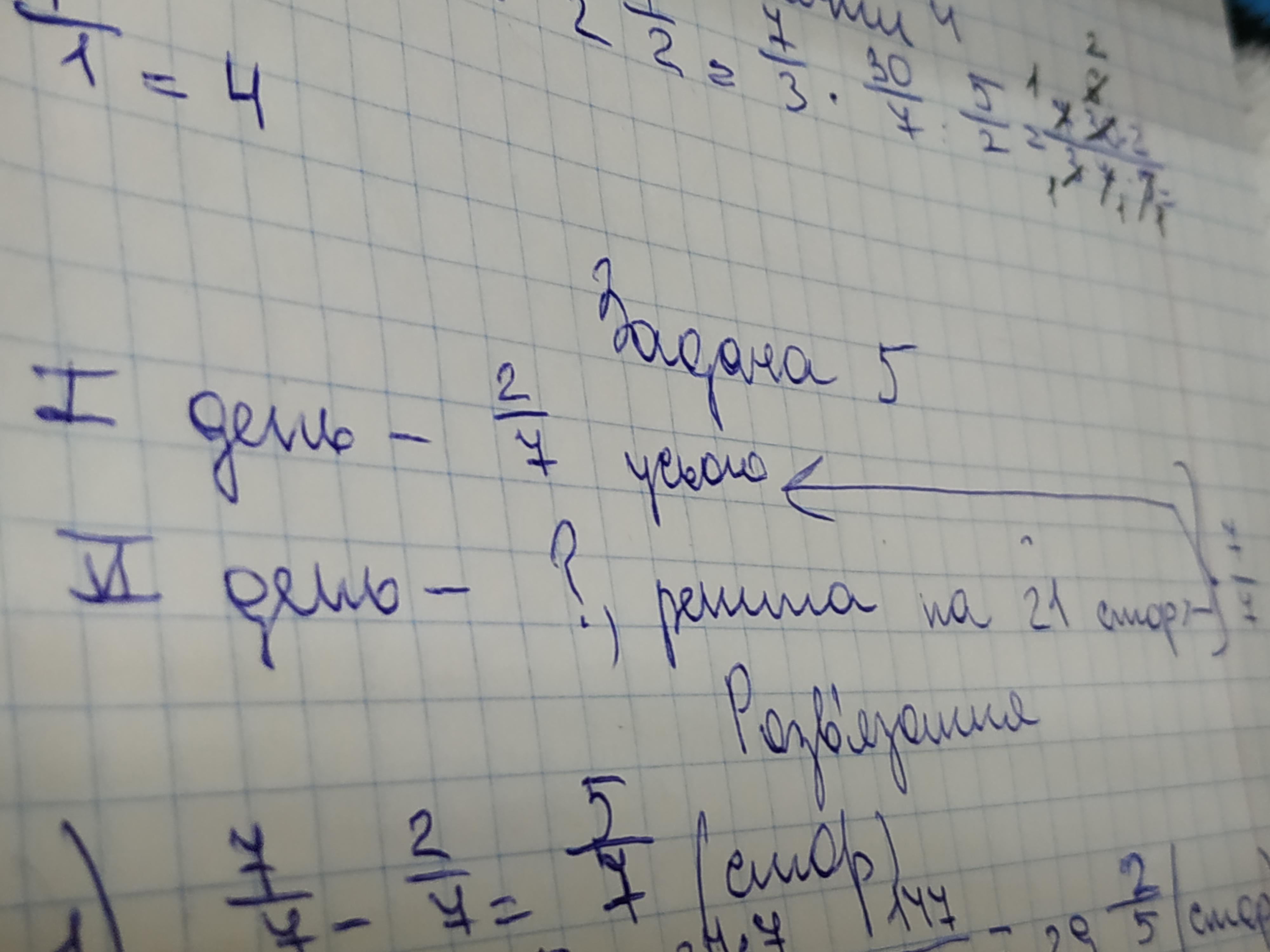 1 день 2/7 усього,2 день-неизвестно,на 21 стор больше чем в первый день .сколько всего мальчик прочитал книгу за два дня?