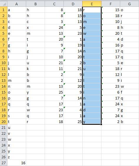 (1 колонка (E на скрине) нечет. символы = -k, чёт. символы = -k-3;