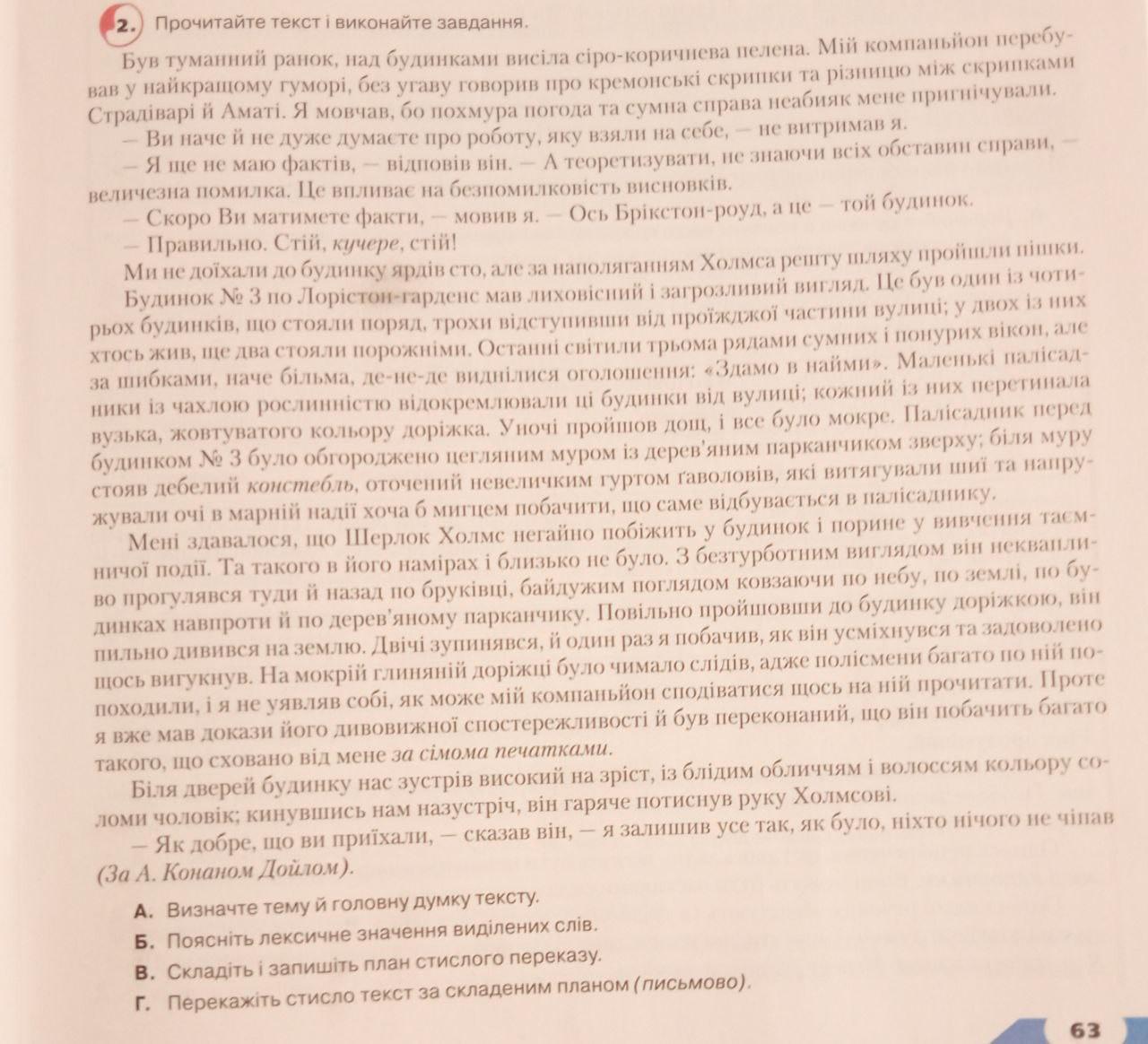 В. 1. Шерлок Холмс і доктор Ватсон під'їжджають до місця розслідування справи.