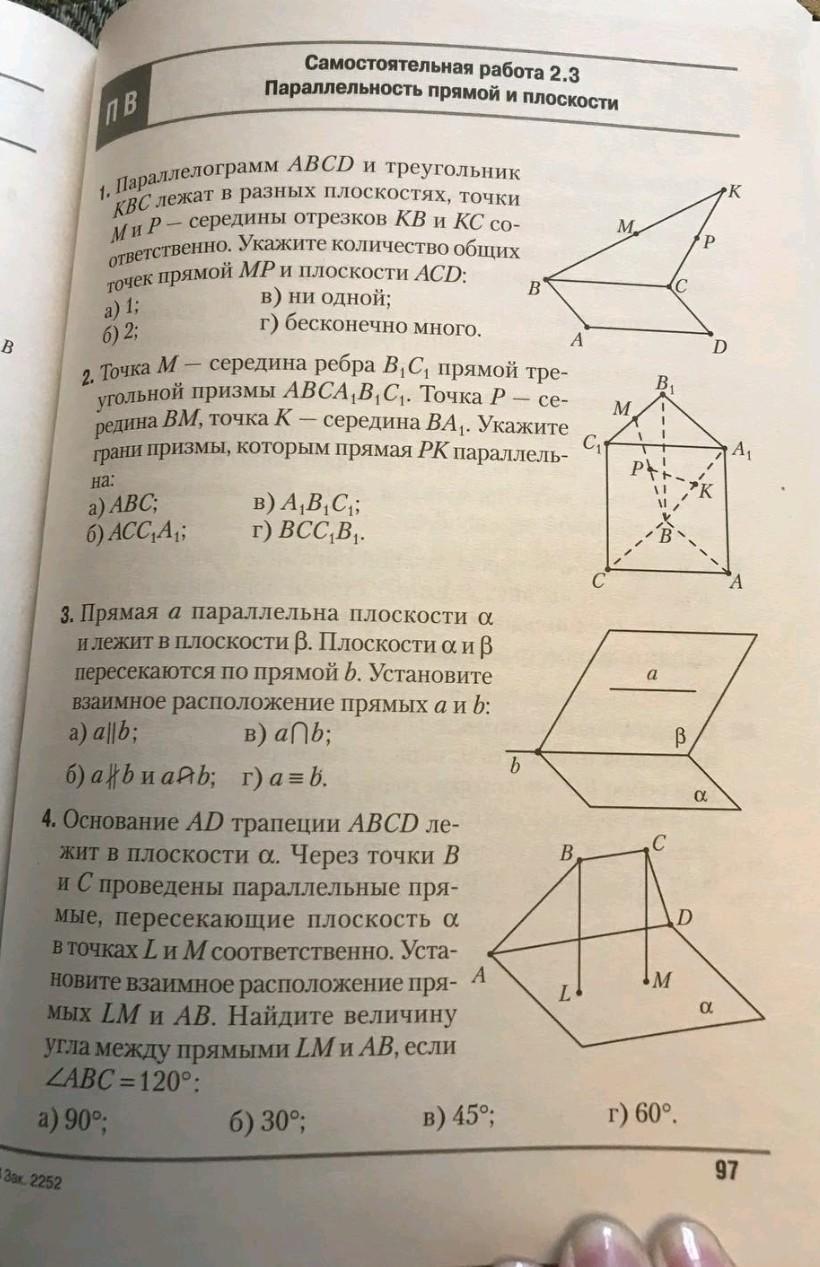 Ответ: Точки Р и К лежат на середине высоты призмы. Значит прямая РК параллельна основаниям призмы АВС и А1В1С1.
