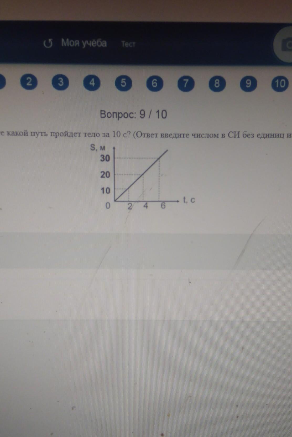 Определите какой путь пройдёт тело за 10 с? (Ответ введите числом в СИ без единиц измерения)