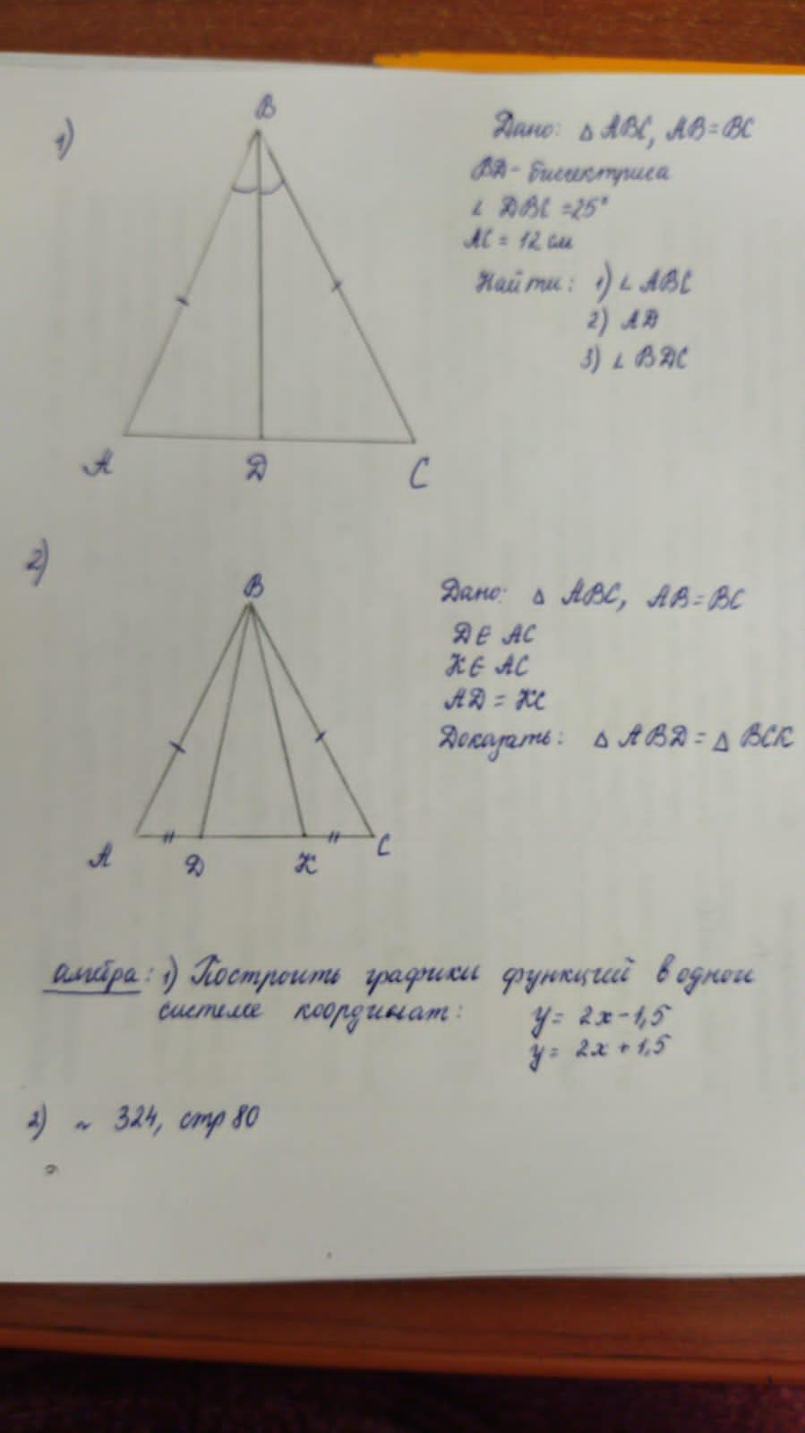 1) В равнобедренном треугольнике медиана, проведённая к основанию, является высотой и биссектрисой.