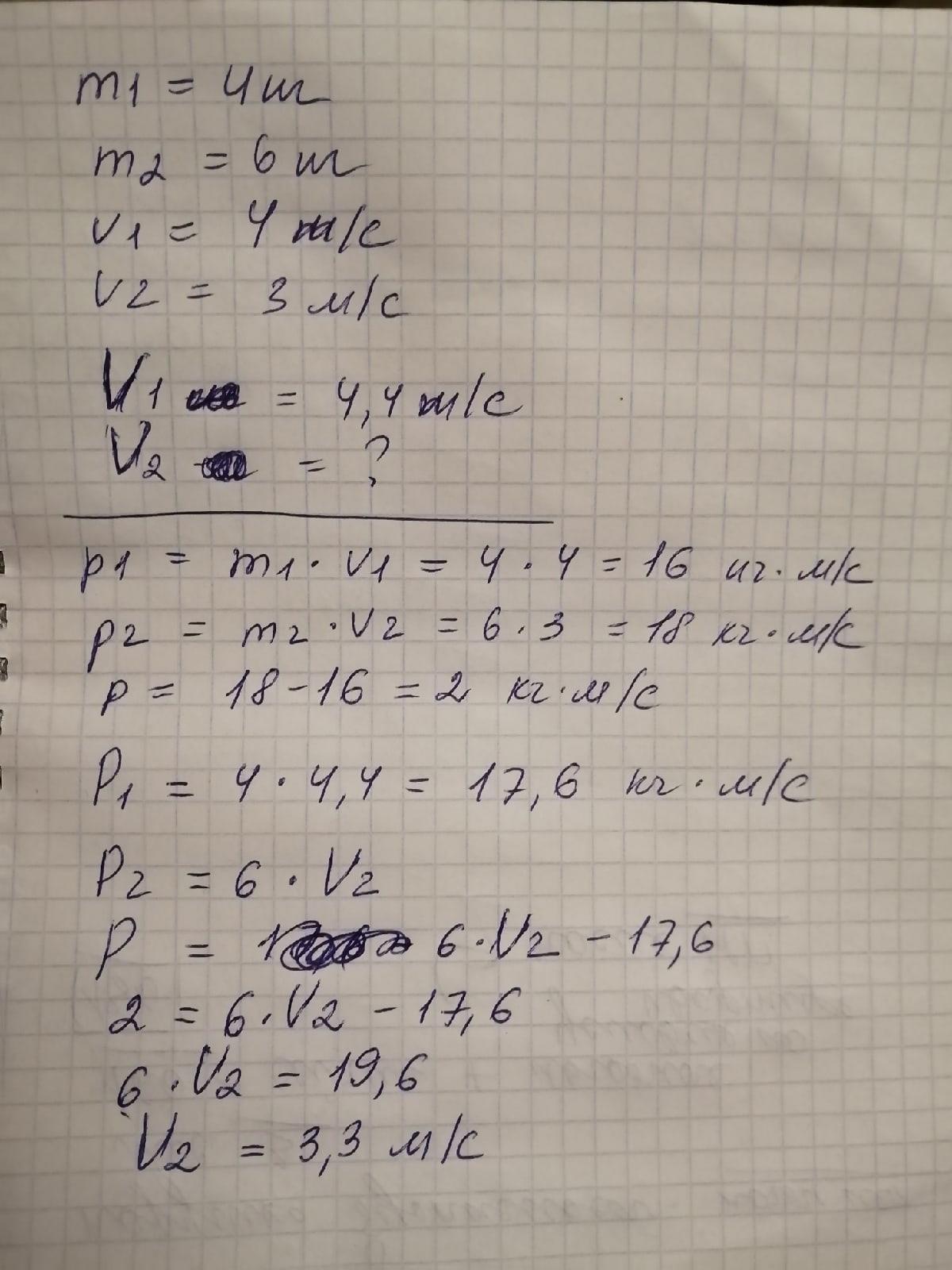 5. Два шарика массами m1 = 4 кг и m2 = 6 кг соответственно летят